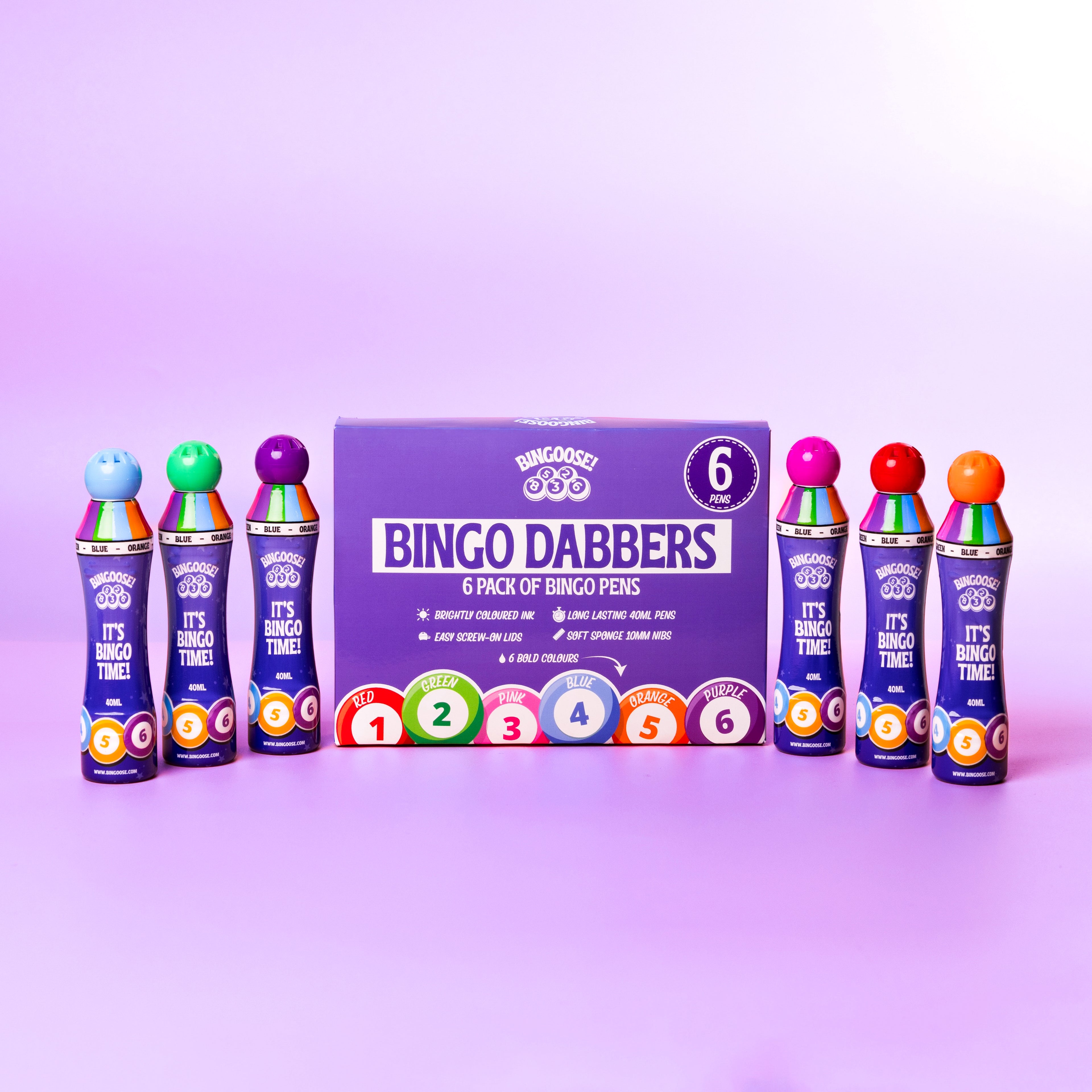 Bingoose Bingo Dabbers Pack of 6 for Dotting Game Books, Tickets, Sheets & Cards - Sponge Tip Jumbo Bingo Pens with Bright Marker Ink - Screw Top, Non Leak Dot Markers - Long-Lasting Daubers for Game Night Fun